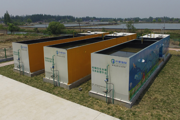 “高效仿生水草污水處理平臺”是針對鄉(xiāng)鎮(zhèn)、農村等中小型污水處理項目開發(fā)的,是脫氮除磷村鎮(zhèn)污水處理專利技術(專利號ZL201310179893.6)的良好應用。該平臺改變了現(xiàn)有很多小型生活污水處理裝置雖然結構上實現(xiàn)了一體化,但附屬設備多、結構不緊湊、抗沖擊負荷差等缺點。