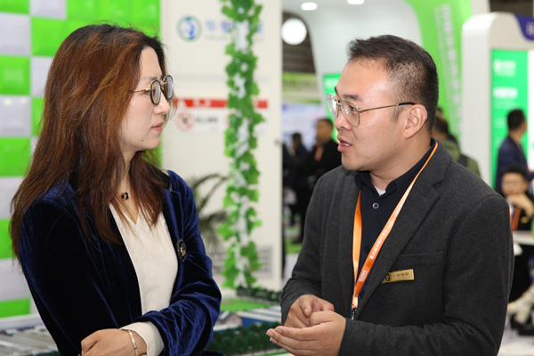 鄭俊為客人講解技術(shù)與產(chǎn)品
