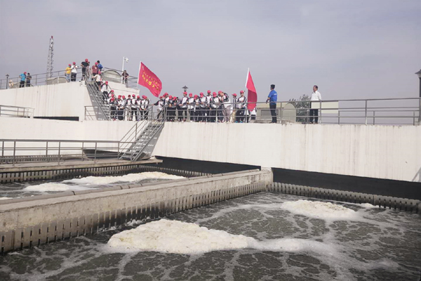 “這些臟水都是哪來的呀?”“水這么臟,怎么才能處理好呢?”“每天都有這么多臟水嗎?”——學(xué)生們充滿好奇地問著。五河華騏副經(jīng)理陳龍帶領(lǐng)同學(xué)們參觀了進(jìn)水泵房、高效沉淀池,曝氣生物濾池、消毒池以及清水池,并通過生動(dòng)有趣的講解讓學(xué)生們了解污水廠是怎樣讓污水化濁為清。