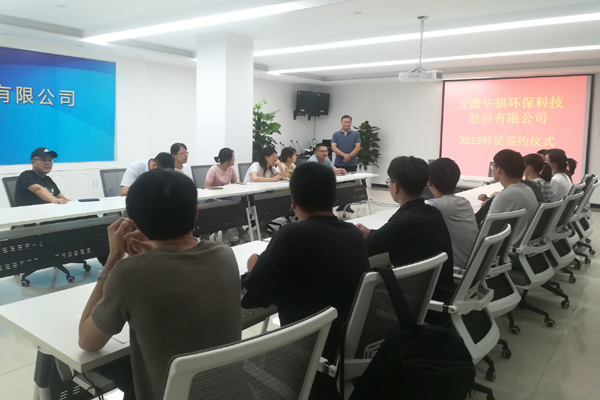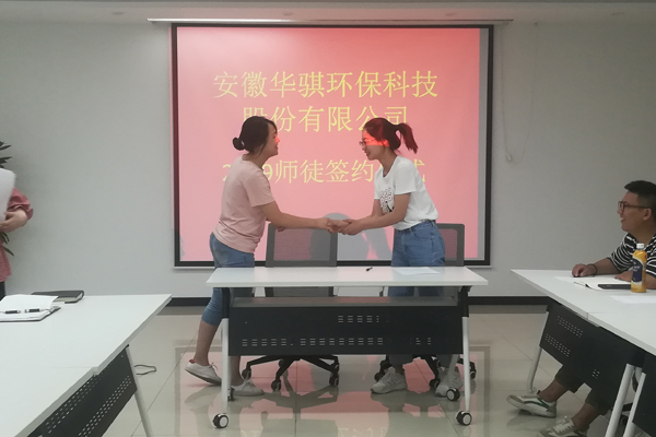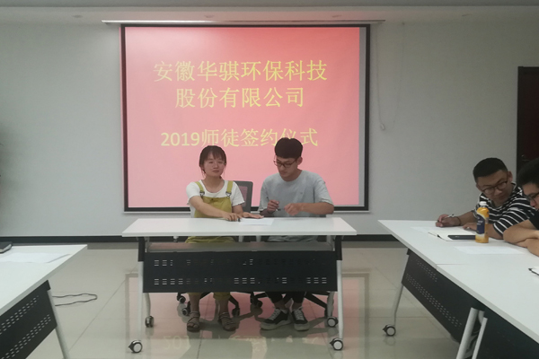 昨日,為迎接應屆畢業(yè)生的到來,安徽華騏環(huán)??萍脊煞萦邢薰驹谌A騏大講堂舉辦了一場別開生面的師徒簽約儀式。