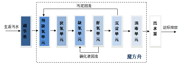 魔方舟泥膜耦合脫氮除磷一體化污水處理設(shè)備采用泥膜耦合A3O工藝,具有故障點少、工藝穩(wěn)定性高,多點精準(zhǔn)氣提控制、低能耗,出水水質(zhì)穩(wěn)定,可無人值守的特點。