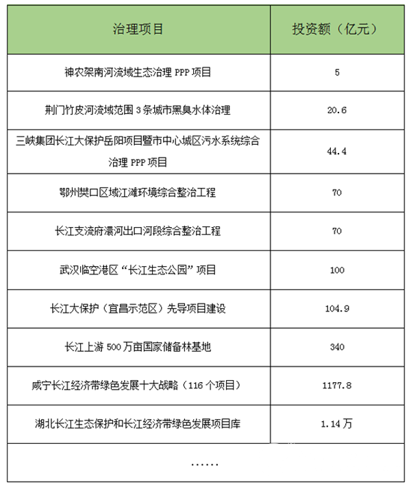 當然,長江生態(tài)環(huán)境保護作為一個系統(tǒng)性工程,要打一場持久戰(zhàn),其資本投入體量一定是巨大的,僅從部分治理項目的投資上就能看到端倪。