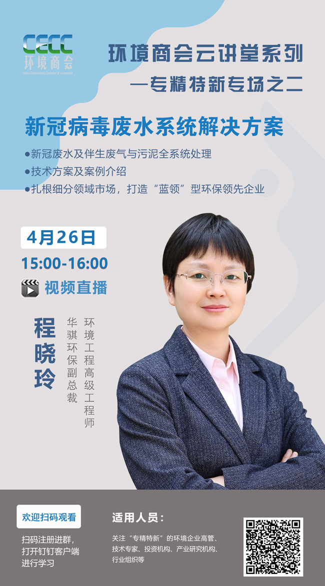 預告:4月26日《新型冠狀病毒廢水系統(tǒng)解決方案》環(huán)境商會云講堂開講