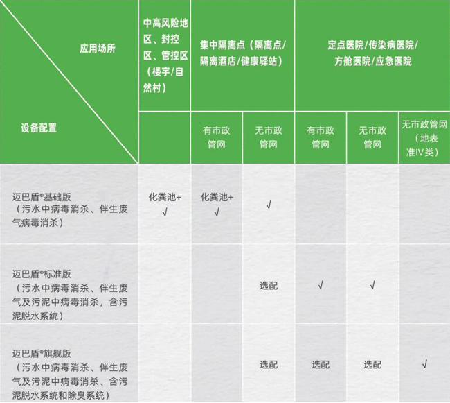 在邁巴盾®基礎(chǔ)版上增加了伴生廢氣中氣溶膠病毒和伴生污泥中病毒的全面消殺,并包含污泥脫水系統(tǒng)。消殺后相關(guān)指標可達到《醫(yī)療機構(gòu)水污染物排放標準》(GB18466-2005)要求及《醫(yī)學隔離觀察設(shè)施設(shè)計標準》和《新型冠狀病毒感染的肺炎傳染病應(yīng)急醫(yī)療設(shè)施設(shè)計標準》(T/CECS661-2020)。